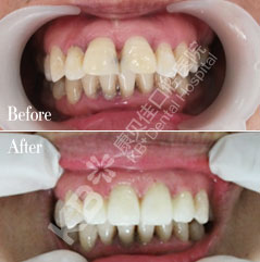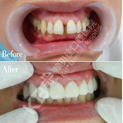 牙齿问题:门牙前突治疗方案:美牙冠快速修复