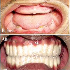 牙齿问题:上半口牙缺失治疗方案:采用All-on-4种植牙,4颗种植体解决半口缺牙
